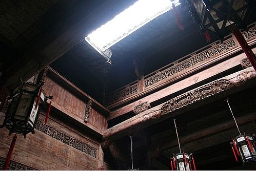 伫立在昏暗潮湿的小天井里,很自然地会想,为什么北方就不见这样窄小的天井呢?南有徽商北有晋商,山西人买卖做得也够火红的,可在古城平遥见到的天井却都十分宽敞,大都是三开间以上,打个羽毛球没啥问题,而在徽派的天井里打个乒乓球都困难。如果北方建筑风格浑厚高大而南方精细小巧,这可以是对南北天井差异的一个评说,那北方人和南方人的性格差异是否也能做不同天井风格的佐证?或许反过来,正是由于南北人的性格差异,才导致南北天井风格的不同。